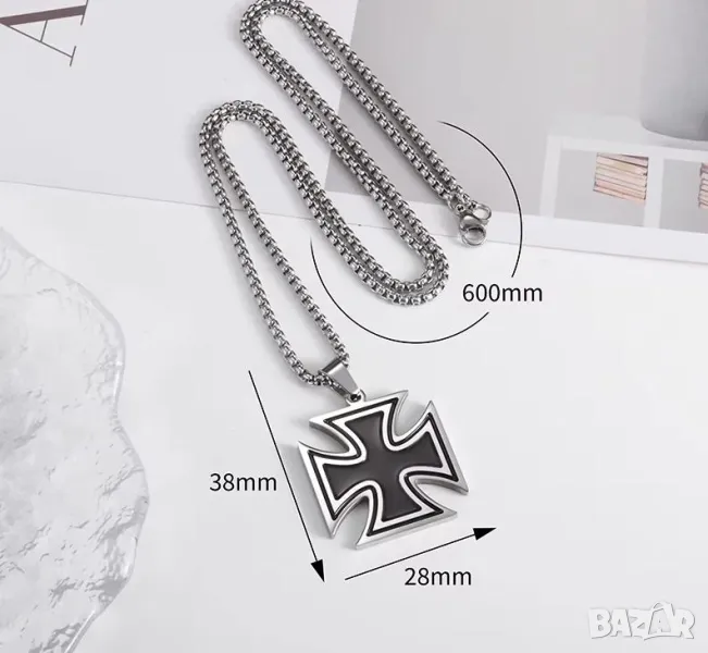 Великолепен малтийски черен кръст 2.8 см на тънък класически стоманен ланец с дължина 60 см.