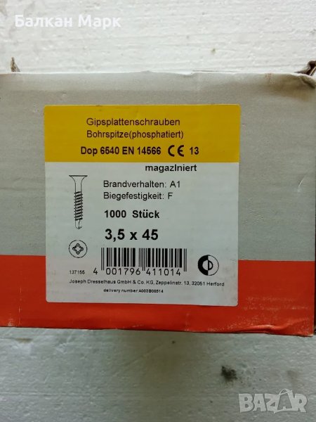 🛠 ВИНТ,винтове самопробивен/и за гипсокартон 3.5х45 ММ – ОПАКОВКА 1000 БР. 🛠 → Обява 50082088