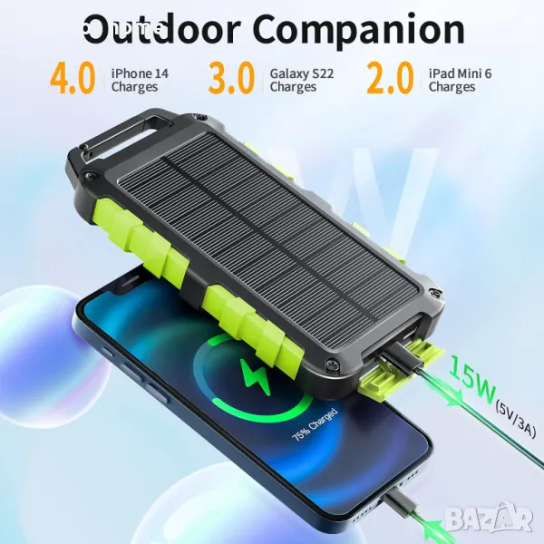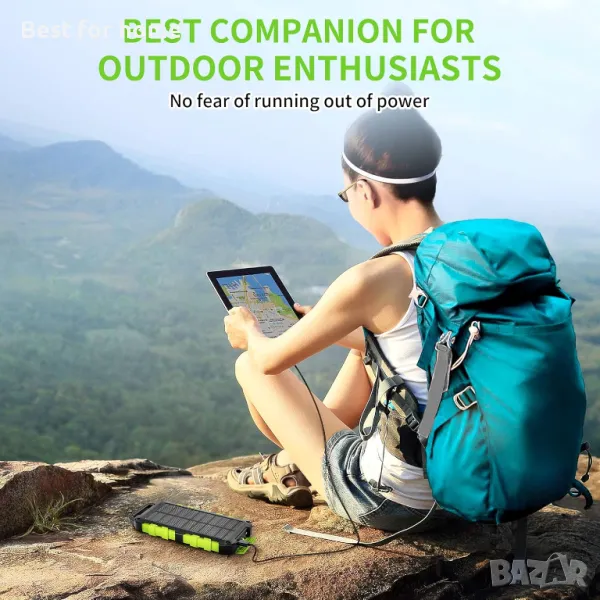 Соларна батерия 20000 mAh, PD 15 W бързо зарядно USB C преносимо слънчево зарядно с 3 изхода и 10 LED, външна батерия за смартфони и таблети на откритол