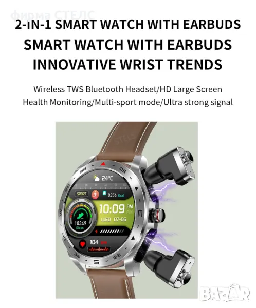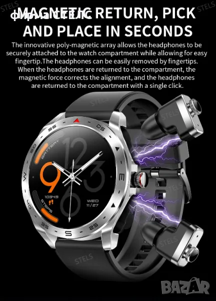 Смарт часовник STELS CB1 е иновативно решение за ежедневие и спорт с вградени Bluetooth слушалки и допълнителна каишка подарък. Следи над 100 спортни активности, сърдечен ритъм, кислород в кръвта и съня.