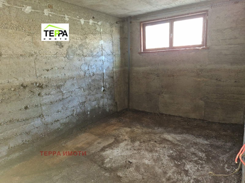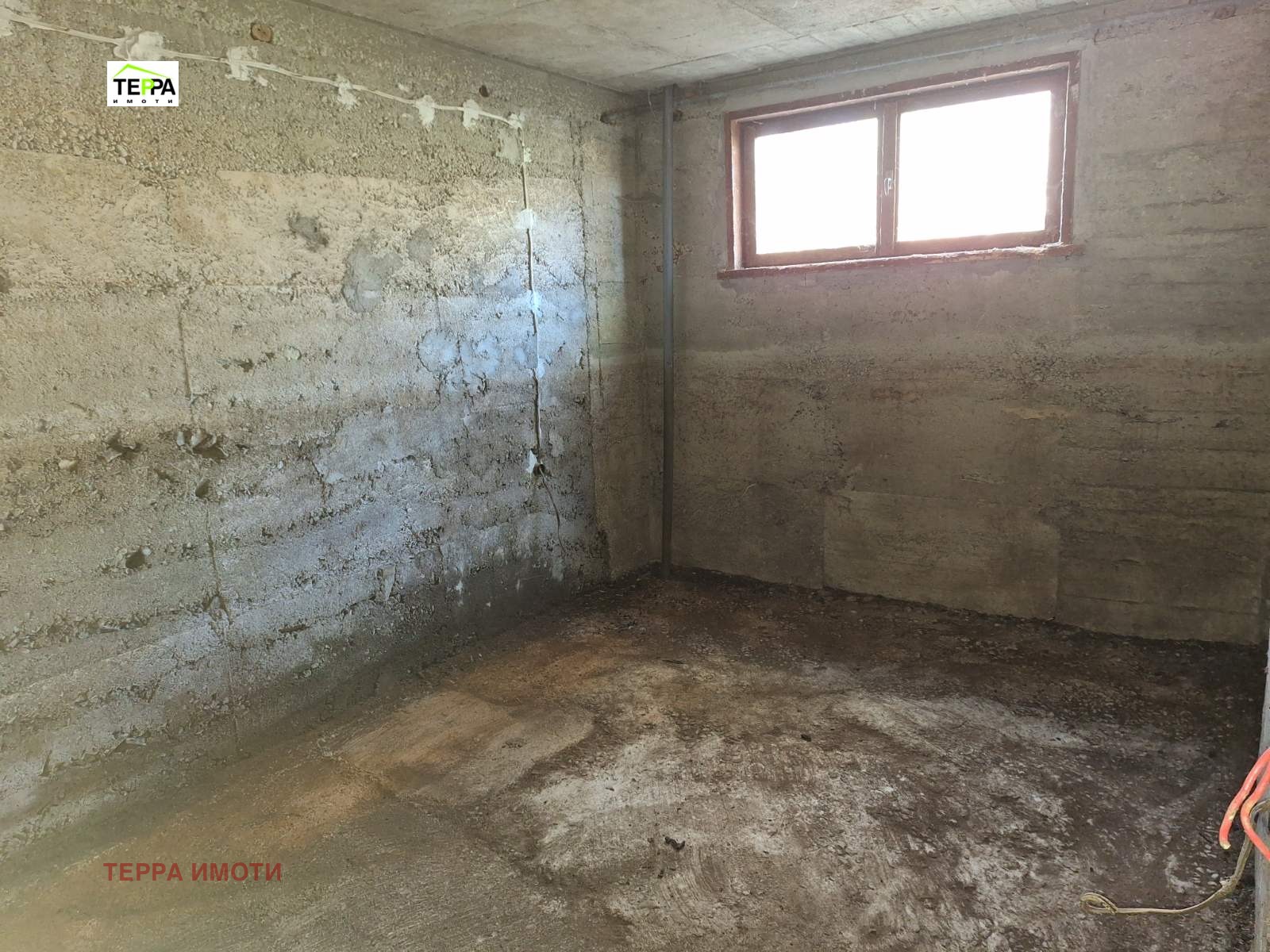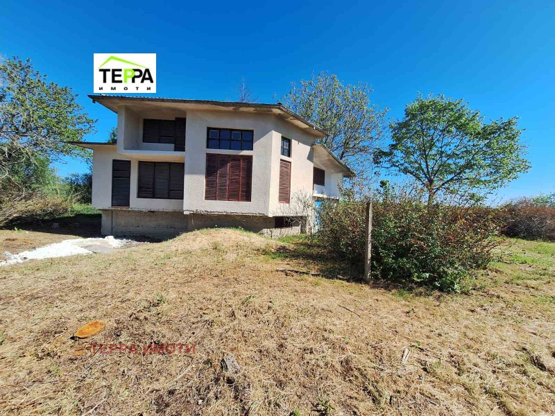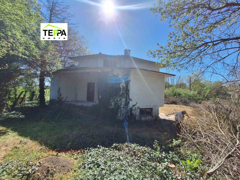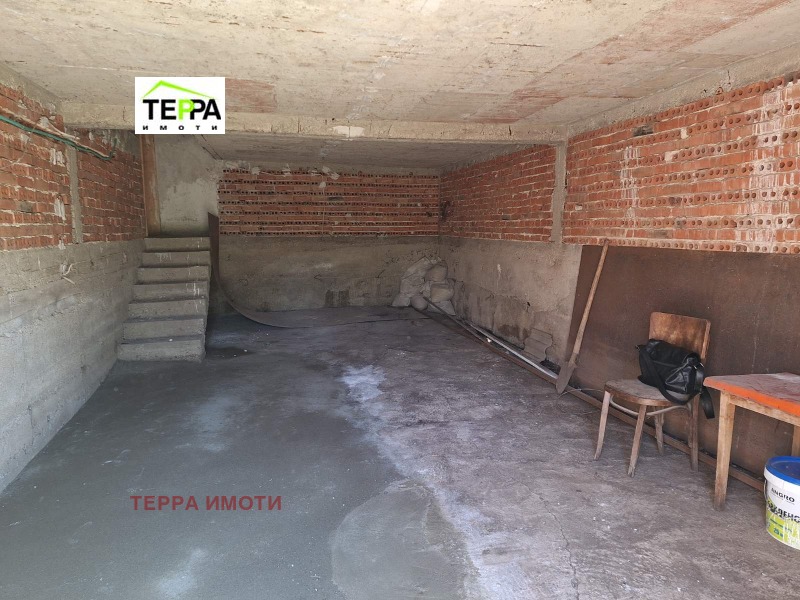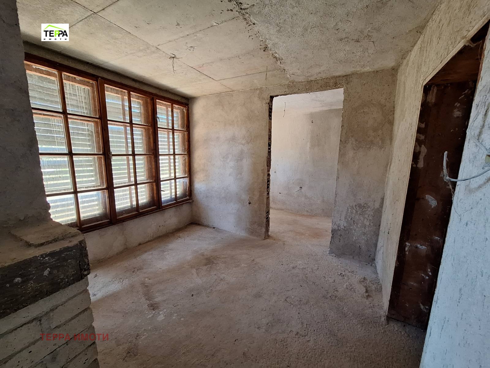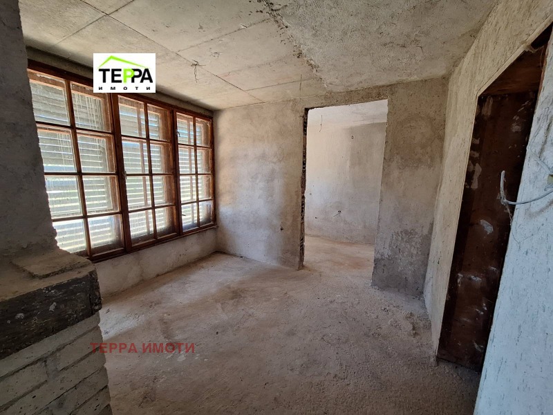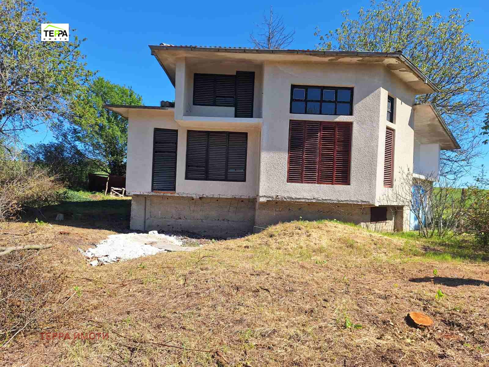 Къщата, която предлагаме е със следното разпределение:Сутерен- две самостоятелни помещения с баня и санитарен възел.Първи етаж-просторна раздвижена дневна с кухненски бокс, изградена камина, баня и санитарен възел.Вътрешни стълби отвеждат към полуетаж с две преходни стаи предвидени за спалня и голям дрешник.Вторият етаж включва две помещения- предвидени за спалня и втора баня.Къщата е на груб строеж, измазана отвън и частично отвътре, има нужда от допълнителни строителни дейности.Към нея има голям двоен гараж, с топла връзка!Разположена е в двор от 1400 кв.м, с декоративна растителност и множество орехови и лешникови насаждения, плодни дръвчета и храсти.В двора има бита сонда.Стари партиди за ток и вода.При сериозен интерес договаряне на цената!