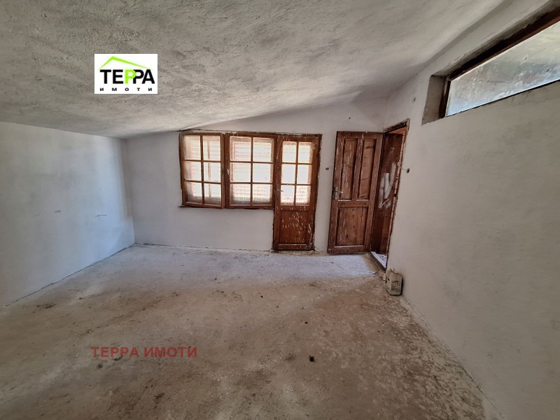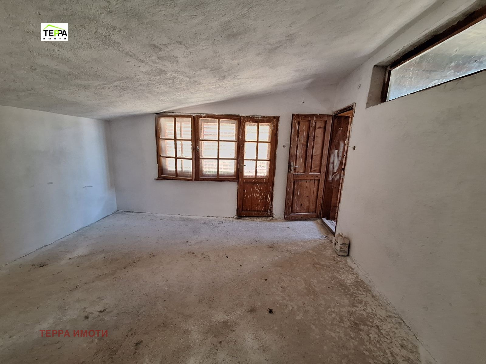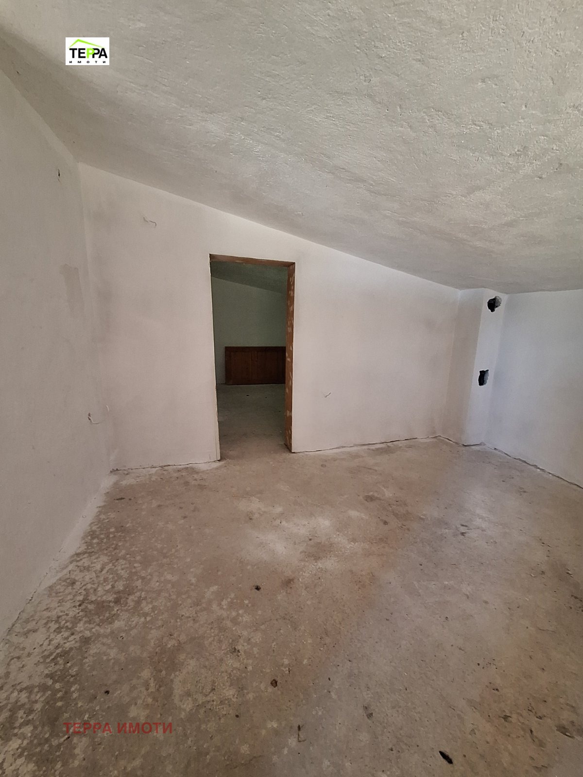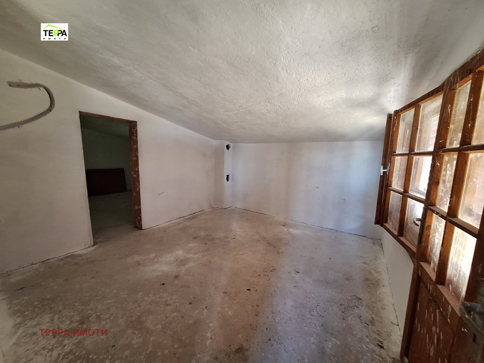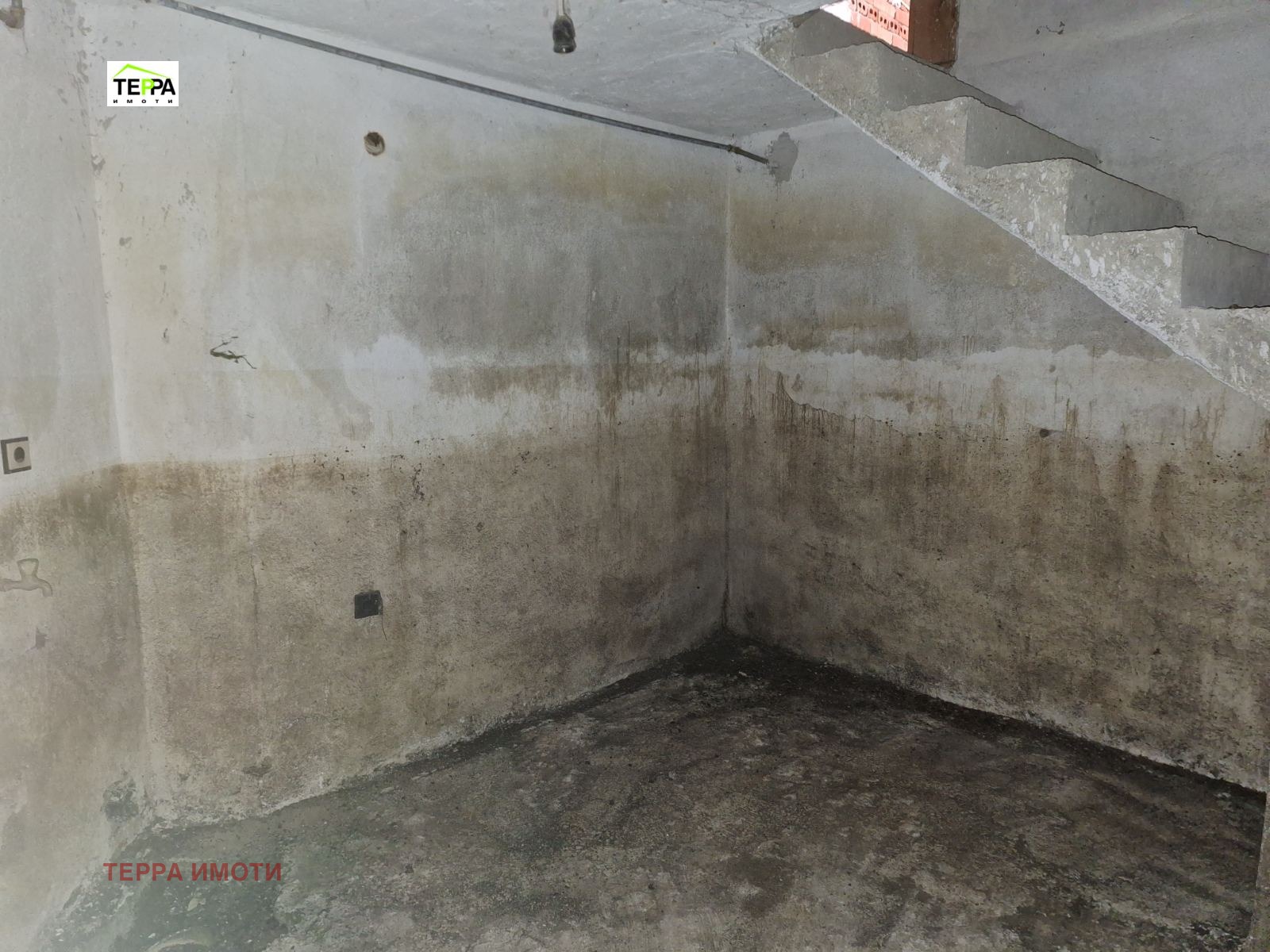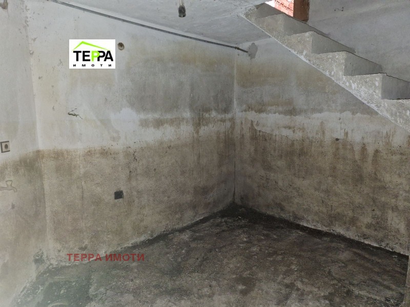 Къщата, която предлагаме е със следното разпределение:Сутерен- две самостоятелни помещения с баня и санитарен възел.Първи етаж-просторна раздвижена дневна с кухненски бокс, изградена камина, баня и санитарен възел.Вътрешни стълби отвеждат към полуетаж с две преходни стаи предвидени за спалня и голям дрешник.Вторият етаж включва две помещения- предвидени за спалня и втора баня.Къщата е на груб строеж, измазана отвън и частично отвътре, има нужда от допълнителни строителни дейности.Към нея има голям двоен гараж, с топла връзка!Разположена е в двор от 1400 кв.м, с декоративна растителност и множество орехови и лешникови насаждения, плодни дръвчета и храсти.В двора има бита сонда.Стари партиди за ток и вода.При сериозен интерес договаряне на цената!