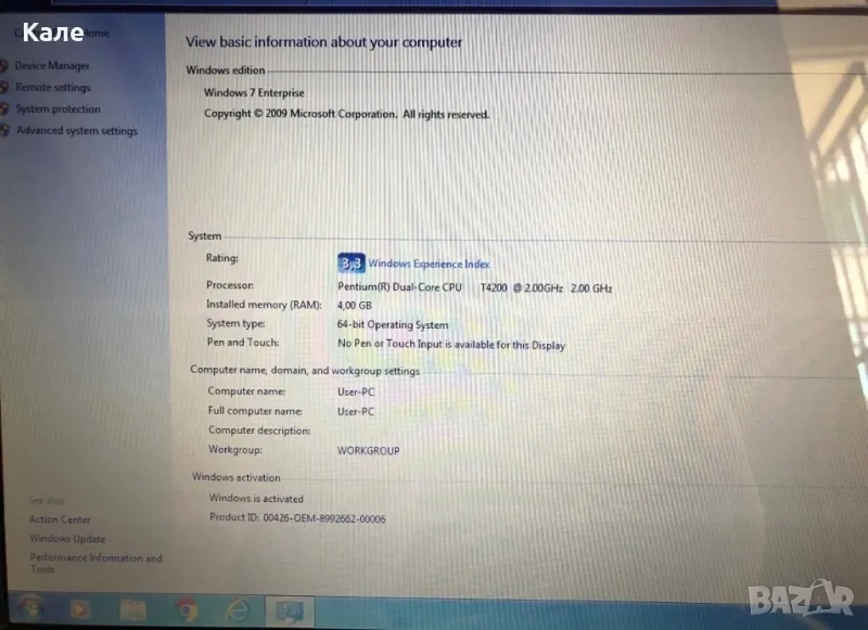 Лаптоп ACER Aspire 4GB 15.5”/39sm. Трябва да си го преинсталирате. Pentium ® Dual-Core, CPU, T4200, 64Bit. 2.00GHz. CD/DVD, 4 USB-порта. HDMI. Тегло 2,6кг.