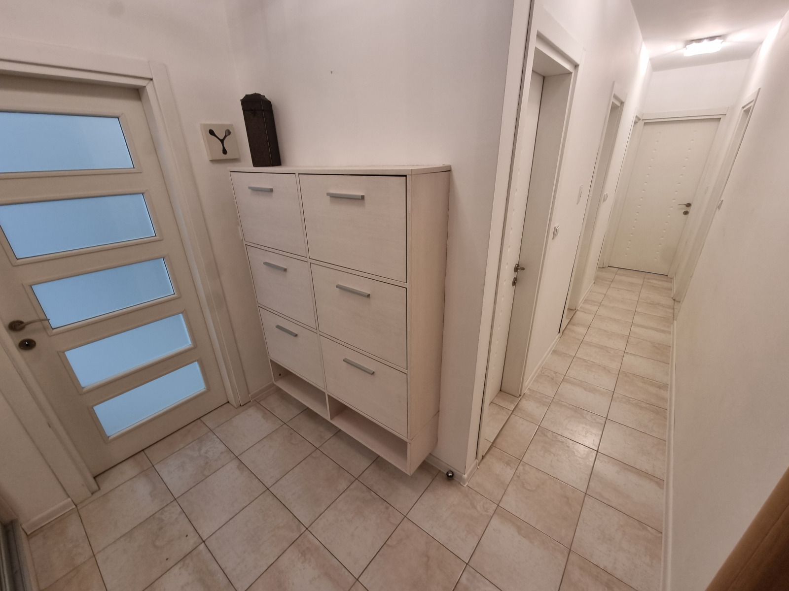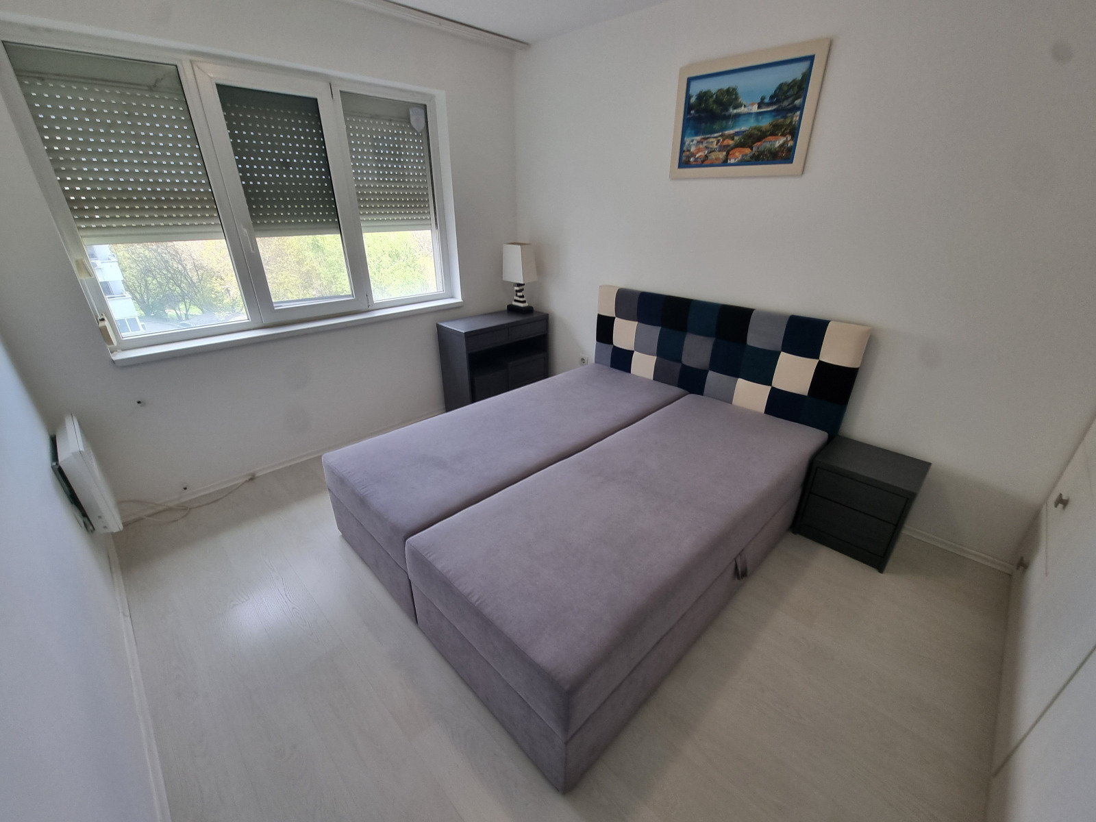 Тристаен обзаведен апартамент до Южен парк. Състои се от просторен хол с кухненски бокс, две спални, антре, две бани с тоалетни, килер и две тераси.