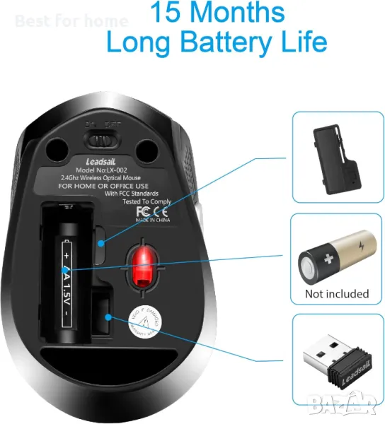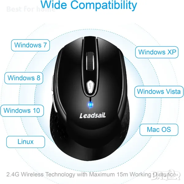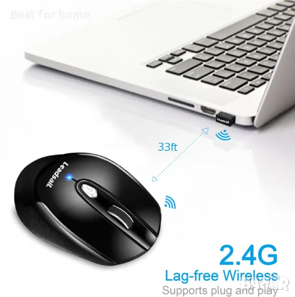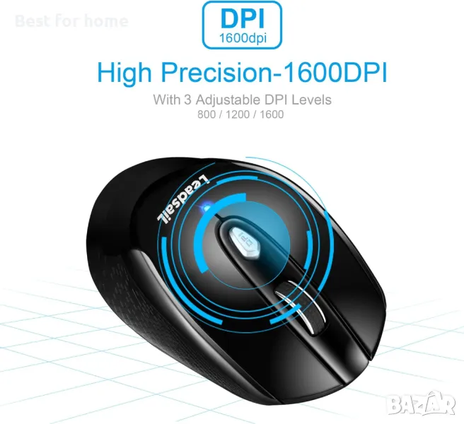 Безжична мишка за лаптоп, безжична USB мишка, оптична, 6 бутона, използва се с AA батерии, 1600DPI с 3 регулируеми нива за Windows 10/8/7/XP/Mac/Macbook Pro/Air/HP/Acer.