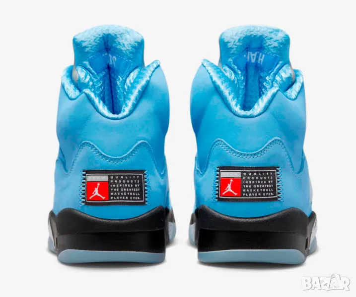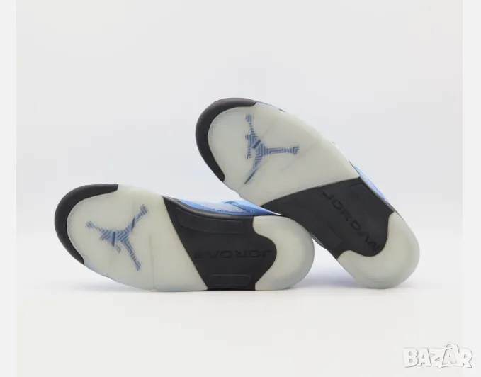 Баскетболни обувки Jordan (Air Jordan 5 Retro) - Още един шедьовър на гениалния дизайнер на Nike, Тинкър Хетфийлд. Той разбираше какви трябва да бъдат баскетболните обувки. Особеността на модела е шарката, нанесена върху външната страна на подметката под формата на зъби на акула. Air Jordan 5 Retro изненада с нови решения и технологии. А именно, подобрен оувърсайз език, изработен от светлоотразителна материя, отлична щипка за връзки и патентованата прозрачна Icy Sole на Nike.