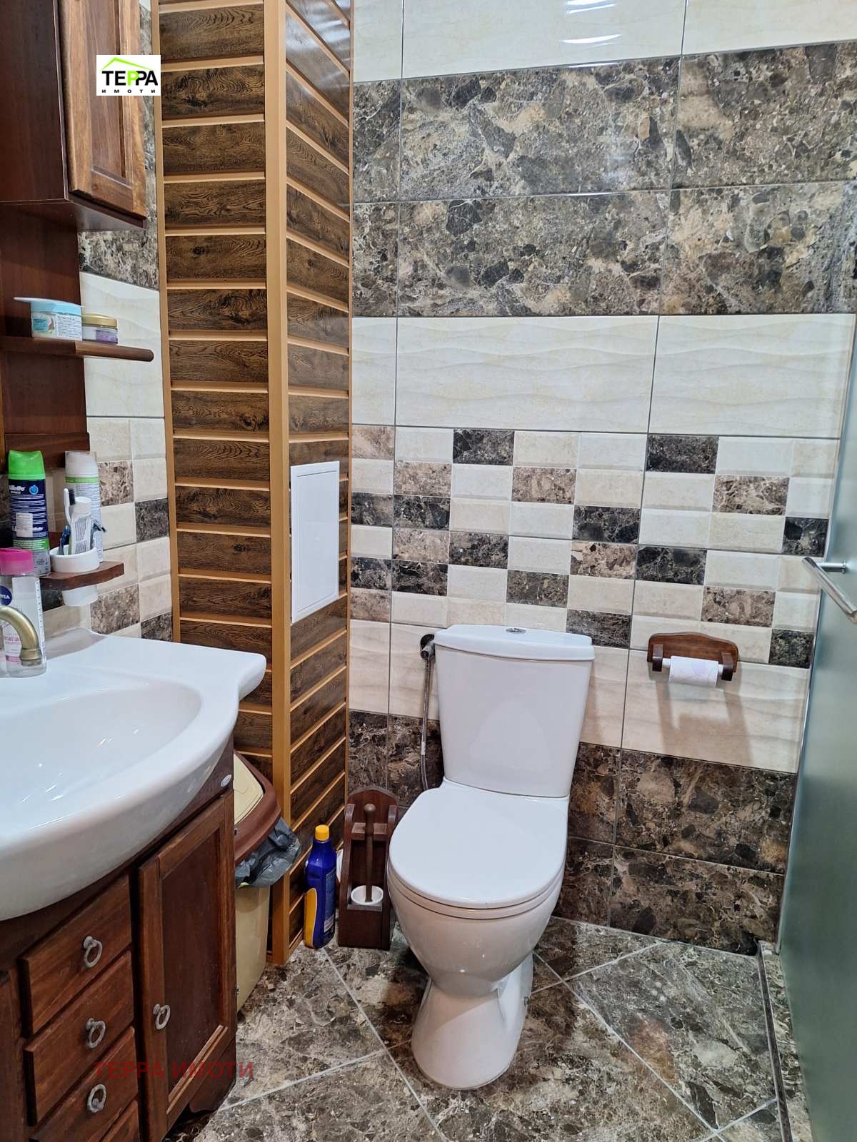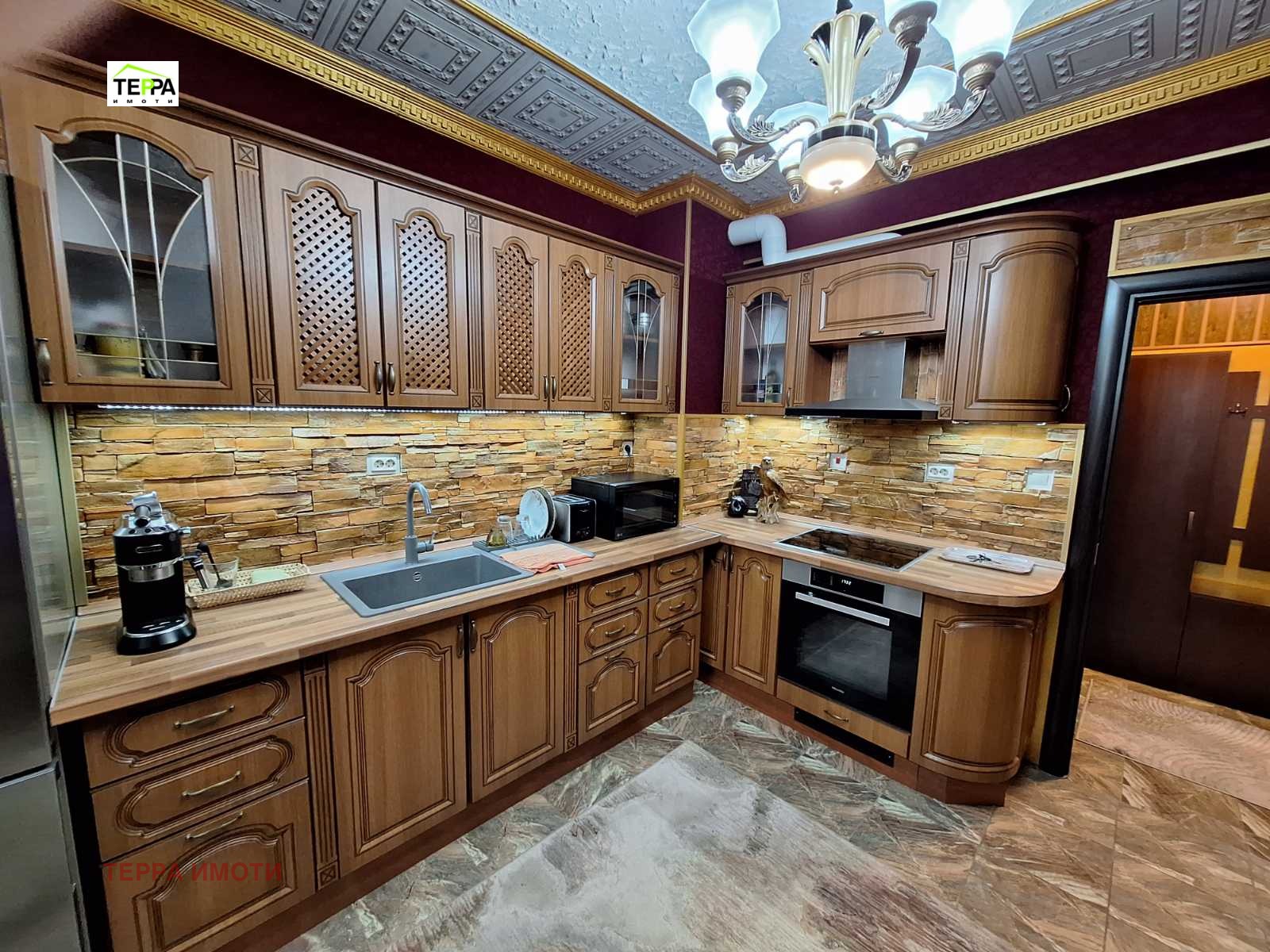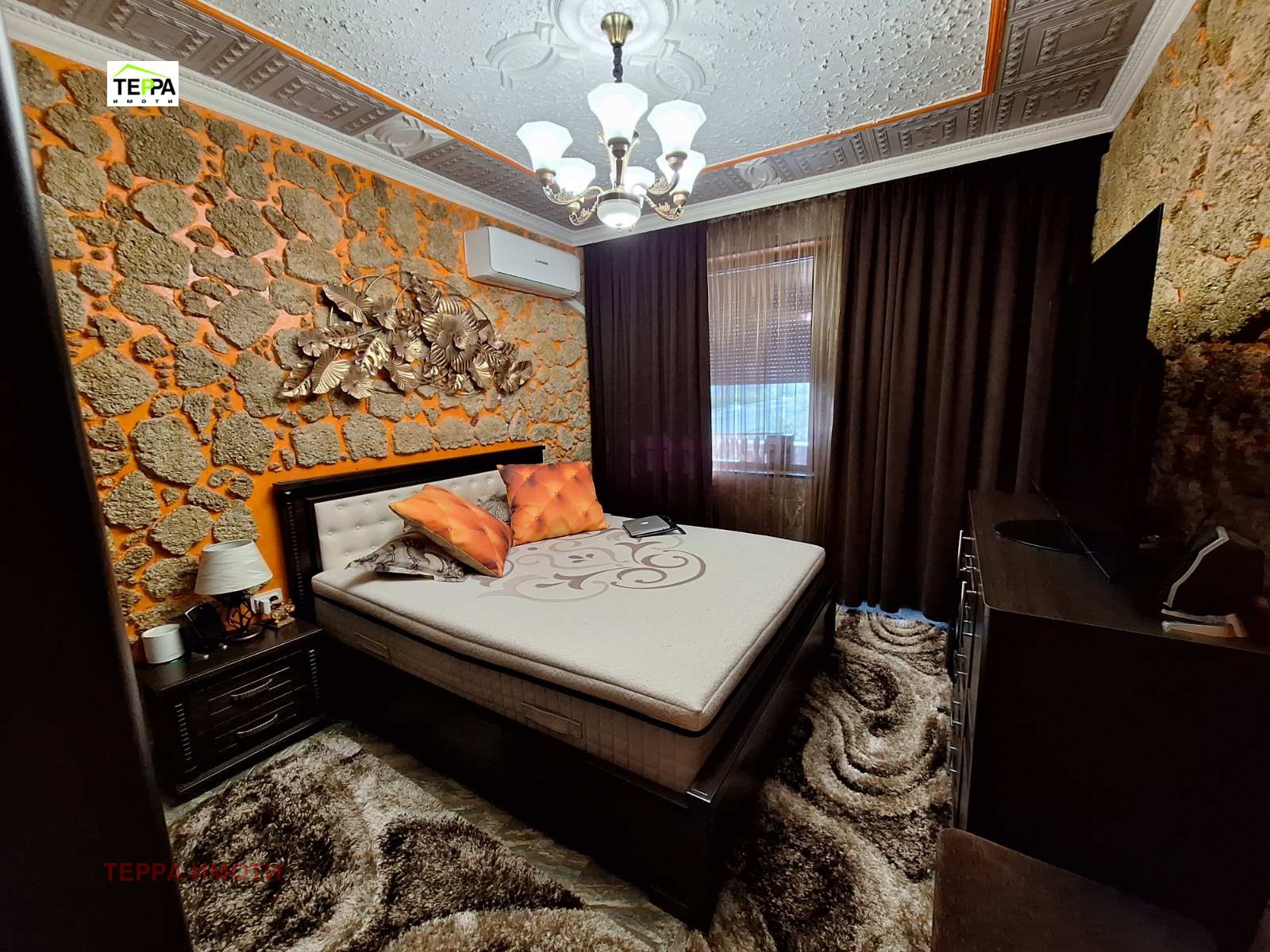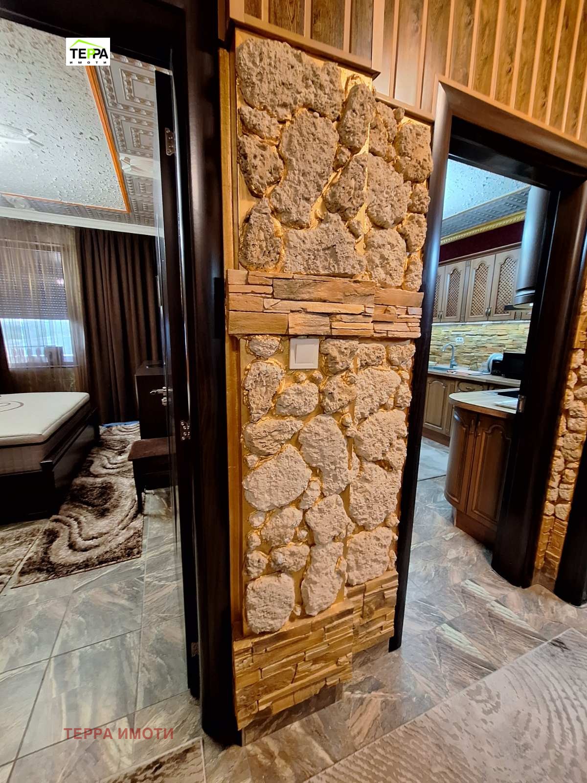 ТЕРРА ИМОТИ имаме удоволствието да Ви представим за продажба, нов тристаен апартамент, в източната част на гр.Стара Загора, в близост до фабрика Наталия!Жилището е разположено на трети жилищен етаж, в новопостроена жилищна сграда, с площ 97 кв.м.Състои се от дневна-трапезария с кухненски бокс, две спални, коридор, две бани и две тоалетни, мокро помещение, една тераса.Изложение юг-запад.Жилището се радва на множество удобства и екстри!Тристайното жилище прави впечатление с бутиковото решение на своите стаи и обзавеждането по индивидуален проект!В обзавеждането са използвани материали и брандове от най-висок клас!Дизайнерски обзаведен, апартаментът е оборудван и с висок клас електроуреди.Продава се с високачествени настилки, италиански гранитогрес, окачени тавани, дизайнерски елементи -декоративни камъни, осветителни тела, висок клас интериорни врати,висок клас енергоспестяващи климатици-подов Daikin Perfera и Mitsubishi Eiectrik,смарт ТВ в трите стаи, хладилник Bosch ,керамични котлони и готварска фурна Miele,пералня и сушилня Bosch.Апартаментът е с алуминиеви ролетни щори с комарници, дистанционно управляеми.В имота има и извод на газ!