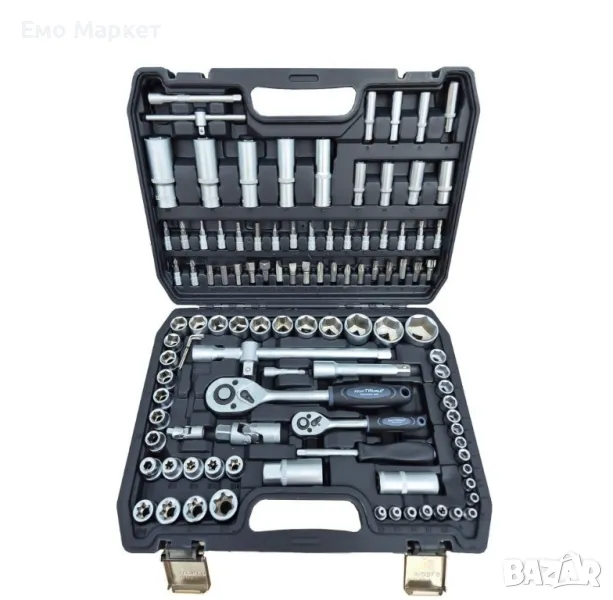 4 вложки шестограм 1/4”: 3мм; 4мм; 5мм; 6мм. 17 броя вложки 1/2” къси: 10мм; 11мм; 12мм; 13мм; 14мм; 15мм; 16мм; 17мм; 18мм; 19мм; 20мм; 21мм; 22мм; 24мм; 27мм; 30мм; 32мм