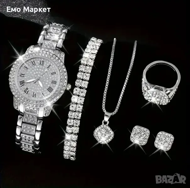 Дамски часовник сребърен с камъни 6 части