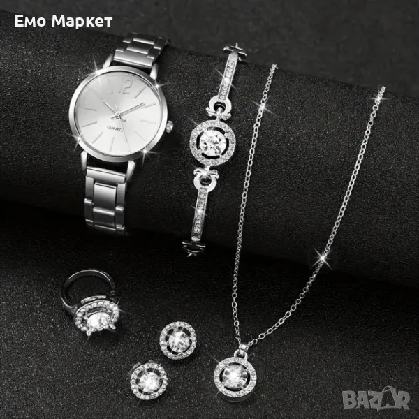 Дамски сребърен комплект часовник 6 части Y27