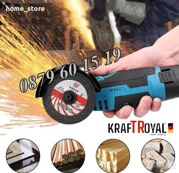 Aкумулаторен безчетков ъглошлайф с с диаметър 76 мм.
