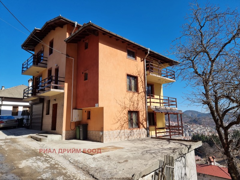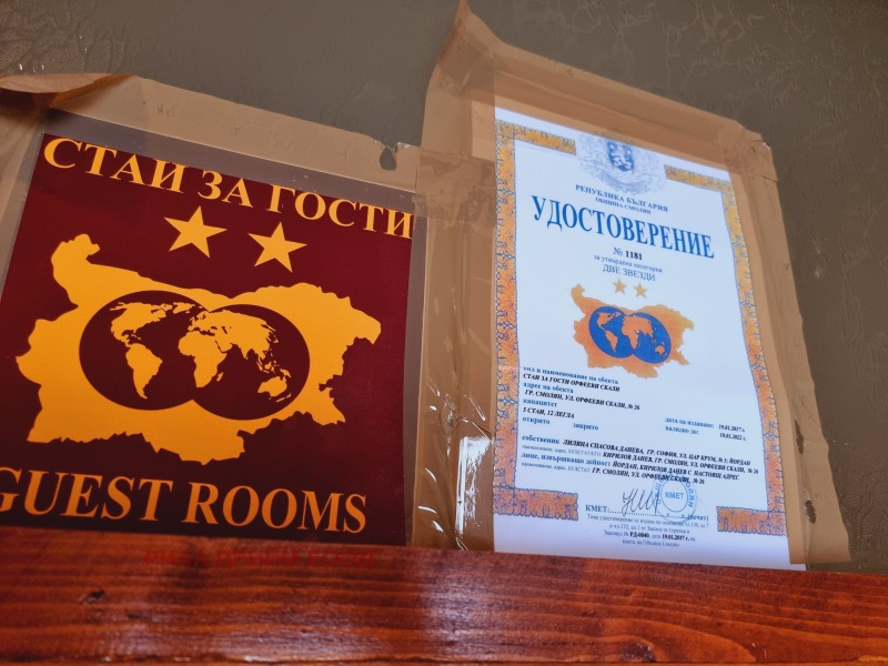 ТЕЛ.:+359879432468;+359301 69999/ПРЕДЛАГАМЕ ВИ ЗА ПРОДАЖБА АТРАКТИВЕН ИМОТ С ДЕЙСТВАЩ БИЗНЕС-КЪЩА ЗА ГОСТИ/КАТЕГ.2*/В КРАСИВИЯ ОБЛАСТЕН ГРАД СМОЛЯН.НАМИРА СЕ ЕДВА НА 1км.ОТ ЦЕНТЪРА НА ГРАДА И ПЕШ.ЗОНА,НА СПОКОЙНО И СЛЪНЧЕВО МЯСТО С ПРЕКРАСЕН ИЗГЛЕД КЪМ ГРАДА И ПЛАНИНАТА.КЪЩАТА Е НОВО СТРОИТЕЛСТВО-МОНОЛИТ,ВЪВЕДЕНА В ЕКСПЛОАТАЦИЯ ПРЕЗ АПРИЛ 2008г.,САНИРАНА,НА 5НИВА И СЛЕДНОТО РАЗПРЕДЕЛЕНИЕ:НА ПЪРВО НИВО ИМА ПРОСТОРНА ДНЕВНА С КАМИНА И ОБОРУДВАНА КУХНЯ С ИЗЛАЗ НА ПАНОРАМНА ВЕРАНДА С ВЪНШНО БАРБЕКЮ,КОТЕЛНО ПОМЕЩЕНИЕ С