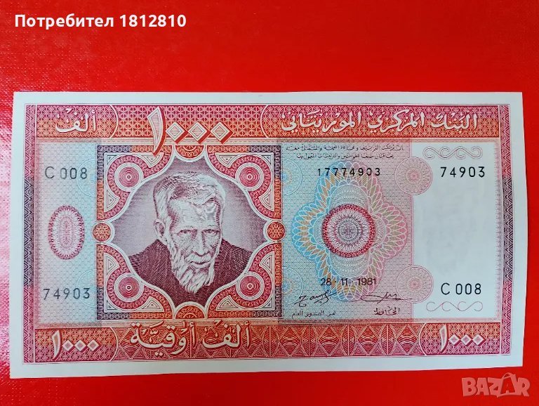 Банкнота 1000 огуя Мавритания 1981г.-13 евро.