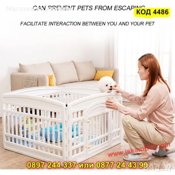1 брой пластмасова кошара от 4 панела, включително 1 панел с врата