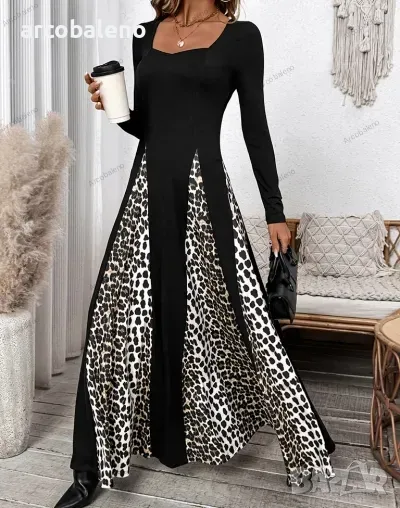 Ликвидация! Дамска рокля с леопардов принт с висока талия и дълъг ръкав - Доставка 24 часа