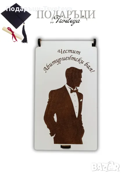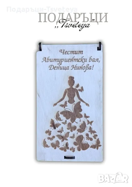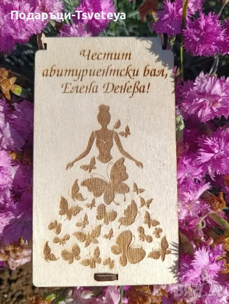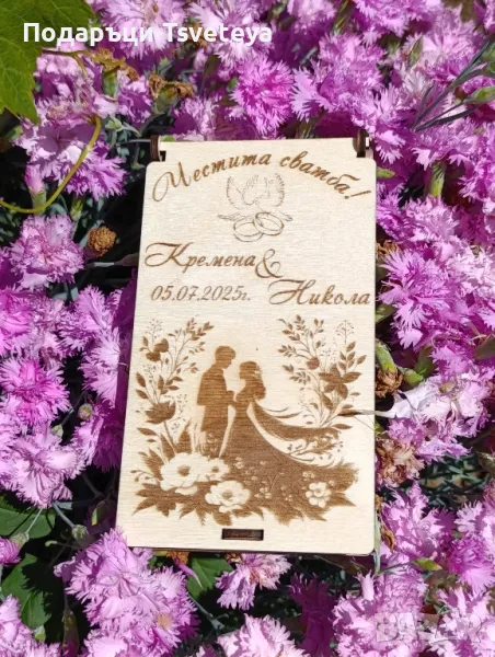 Персонализирана дървена картичка за парична сума → Обява 50093256