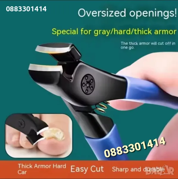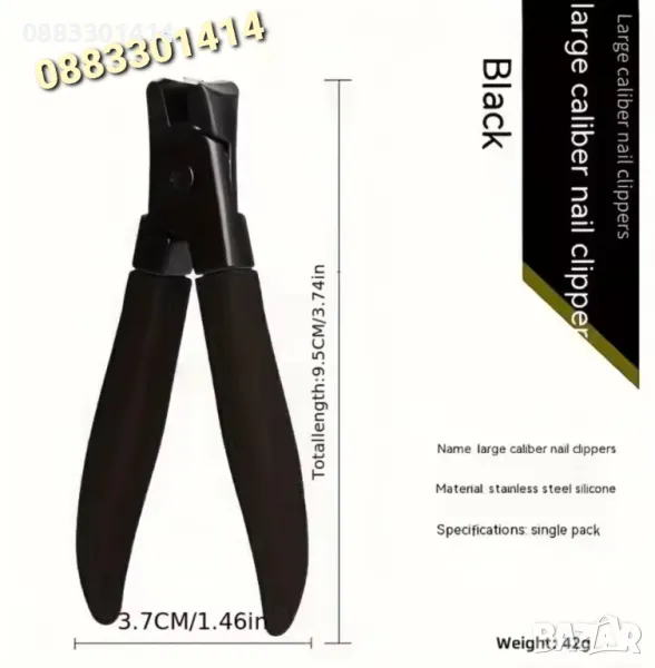 Нокторезачка с голям отвор и остри ножчета, подходяща както за обикновено ползване, така и за удебелени / заболели нокти.