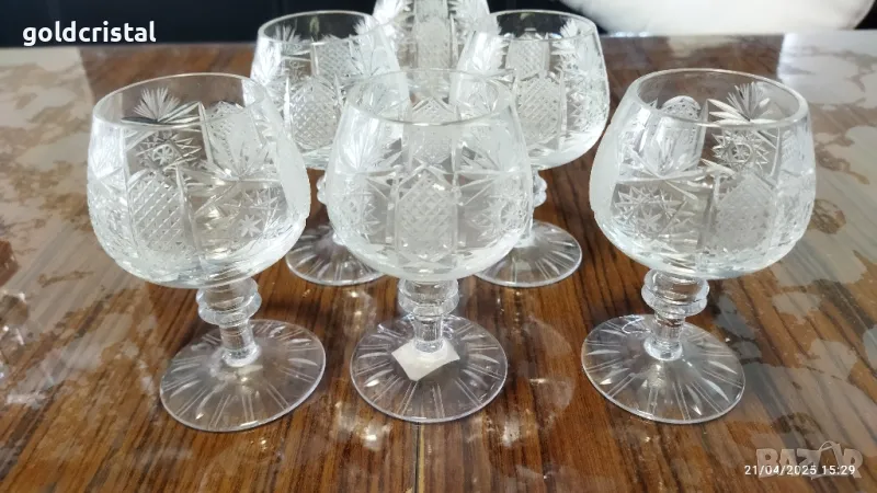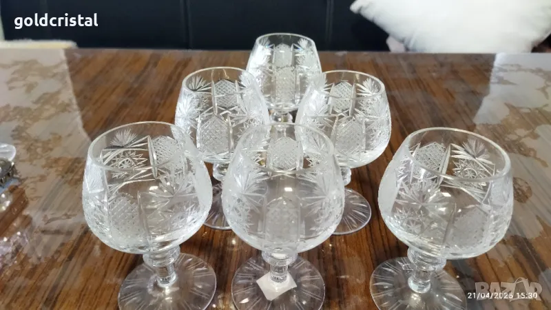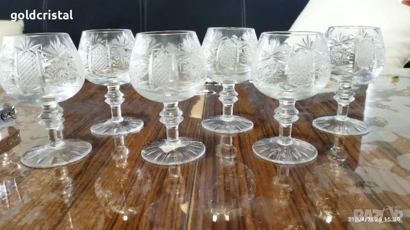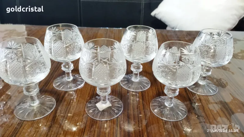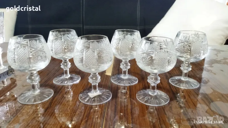 кристални чаши луксозна серия Ропотамо -Китка Нови пазар богата ръчна гравюра чаши за коняк без забележки сервиз комплект сет лот ретро арт декор винтидж колекция стари старинни антикварни предмети обзавеждане за дома и семейството подходящи за подарък за ценители и колекционери
