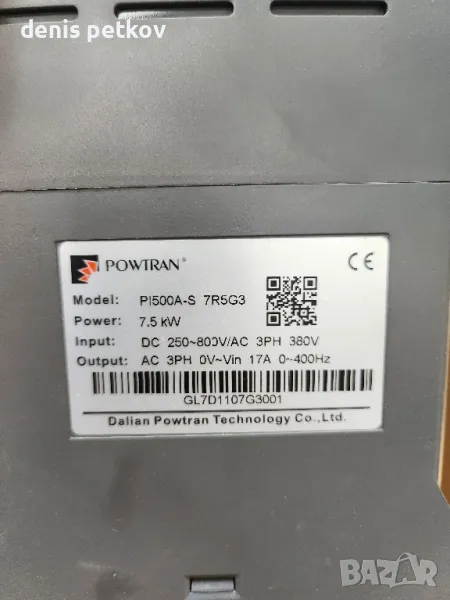 Продавам хибриден честотен инвертор Powtran PI500A-S 7R5G3 – 7.5 kW, 380V, трифазен, подходящ за соларни помпени системи както и за управление на трифазни асинхронни двигатели с мощност до 7.5 kW. Подходящ както за стандартни индустриални приложения, така и за системи със соларно захранване, като напр. фотоволтаични водни помпи, благодарение на специални функции за работа с променливо напрежение от