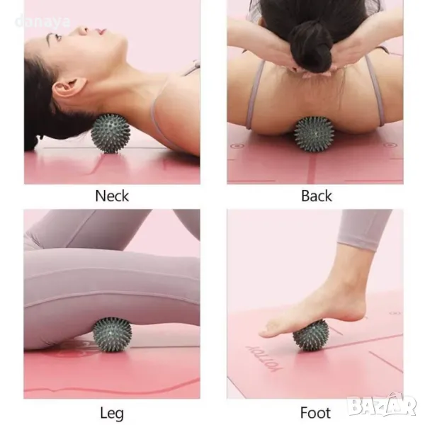 Упражненията с топката подобряват кръвообръщението и имат антистрес ефект. Може да се използва като масажор за крак, гръб, ръце и други части на тялото.