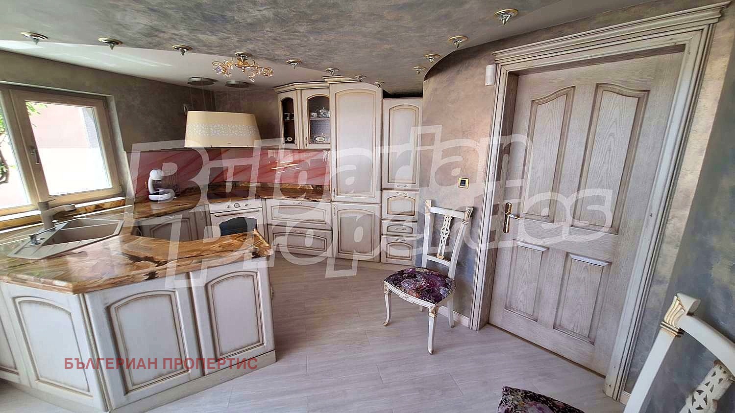 Къщата е завършена с външна изолация, висок клас немски прозорци, подови настилки - винил, мрамор и гранит. Отоплението е решено с локално парно с пелети, слънчеви колектори, климатици. Луксозното обзавеждане и оборудване, включително полилей и дръжки на вратите Сваровски, може да разгледате на снимките.
