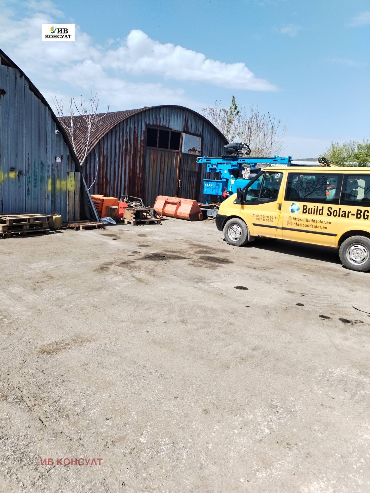 ИВ Консулт отдава дългосрочно под наем индустриален имот в град Стара Загора, разположен в Промишлена зона Запад. Имотът е с обща площ от 8059 кв.м, от които 2139 кв.м е застроената площ. Базата включва търговски помещения, четири гаража, административна сграда с портиерна на два етажа, складови помещения с рампи за странично разтоварване, работилница, три