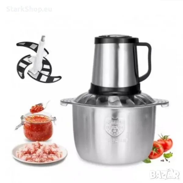 С три настройки на скоростта, този многофункционален чопър предлага контрол и прецизност при приготвянето на всеки вид храна. Дизайнът му включва издръжлива конструкция от неръждаема стомана, която не само изглежда стилно на вашия кухненски плот, но също така гарантира дълготрайност и устойчивост при ежедневна употреба. Прозрачният капак ви позволява да следите процеса на смилане, което добавя удобство и безопасност към вашия кулинарен процес.
