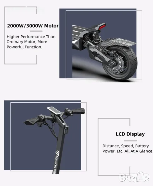 Електрическа тротинетка скутер 72V 2*1500W с два мотора → Обява 50096122