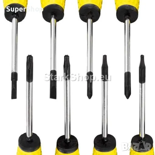 - 8 броя Phillips отвертки: PH0 х 75;PH0 х 100;PH1 х 75;PH1 х 100;PH1 х 150;PH2 х 100;PH2 х 150;PH3 х 150