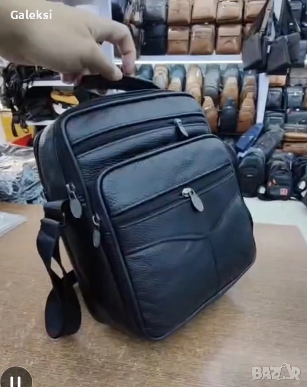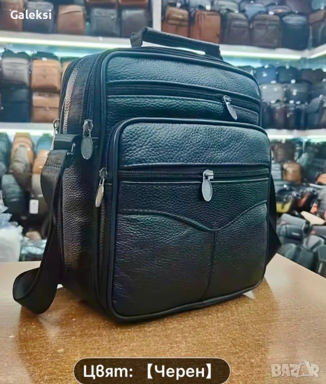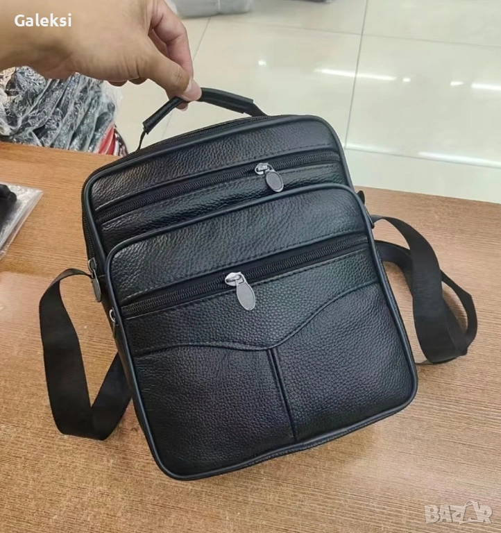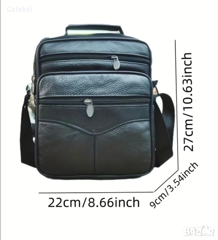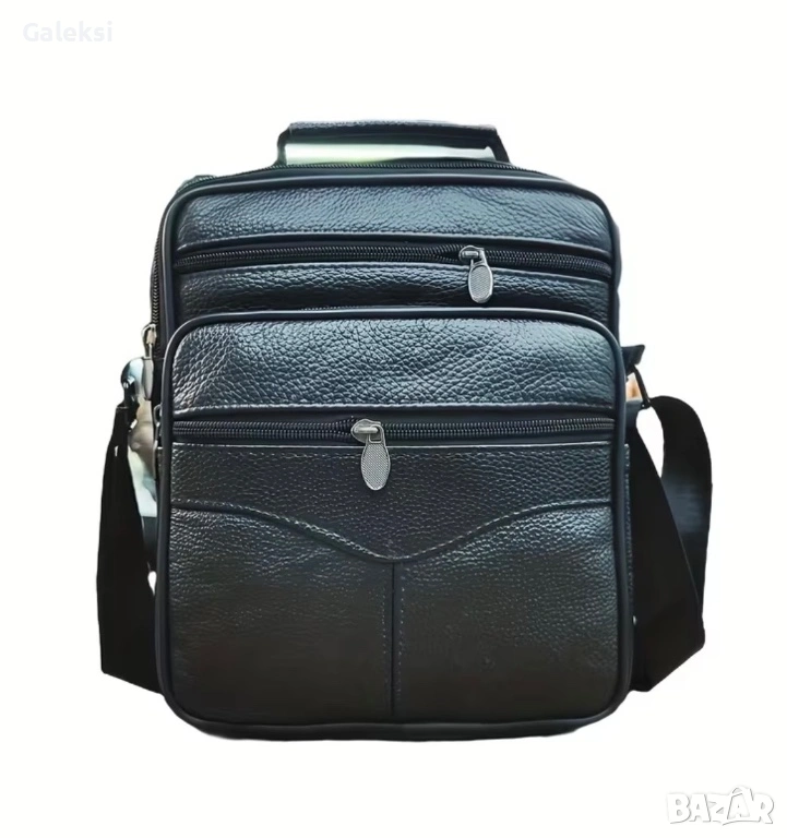 Практична, Ежедневна и Обемна Мъжка делова кожена чанта с регулируеми презрамки и голяма вместимост!