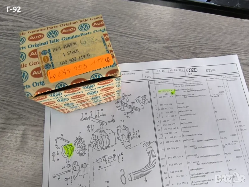 049903119H=G**NEU**Нови оригинални части**V A G**Шайба за генератор**
