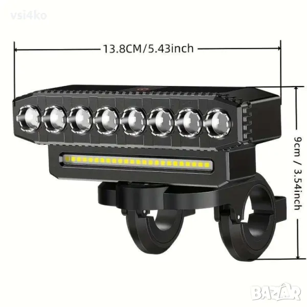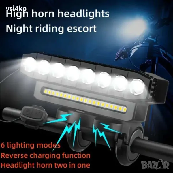 Издигнете нощното си каране на ново ниво с този интелигентен LED фар за велосипед, който комбинира мощно осветление, вграден клаксон, функция външна батерия (power bank) и дистанционно управление. Независимо дали карате в града или по планински пътеки, този фар ви осигурява безопасност, удобство и функционалност.