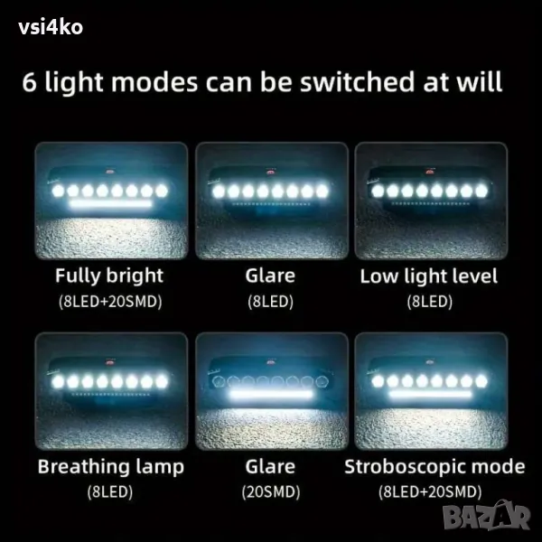 ✅ Няколко режима на осветяване – силен, среден, слаб, мигащ, комбиниран и др.