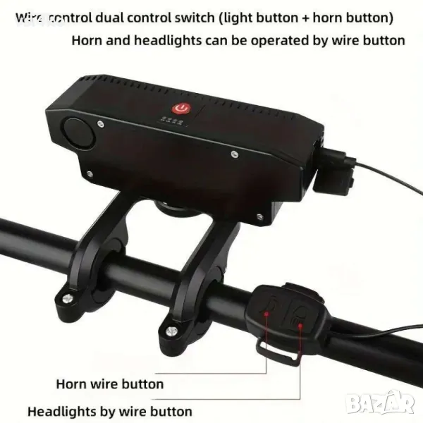 Многофункционален LED фар за велосипед с клаксон, Power Bank и дистанционно управление – Водоустойчива светлина за нощно каране.