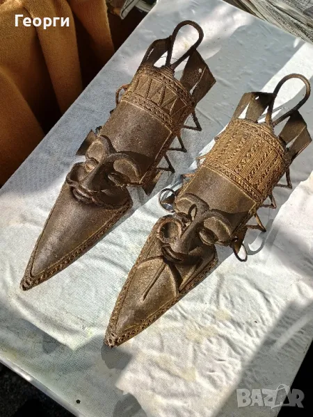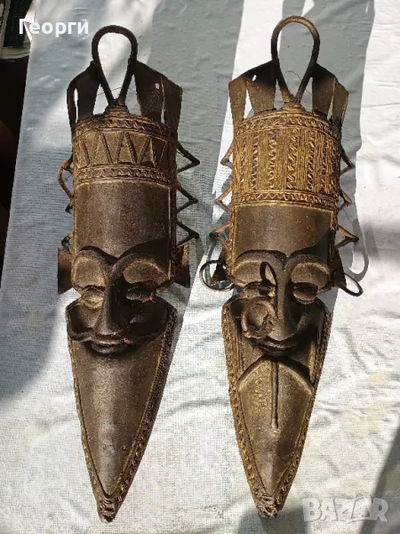 Много красиви стари бронзови маски,мъжка и женска.Размери 36 на 11 сантиметра.Цената е за двете.