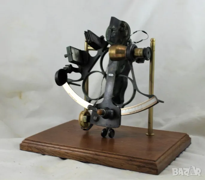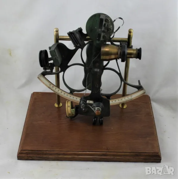Корабен секстант ”Kelvin & Hughes ltd. ” London, на дъбов плакет 21 х 31 см. с месингови стойки. Секстанта е от 50 години, работещ, в отлично състояние.