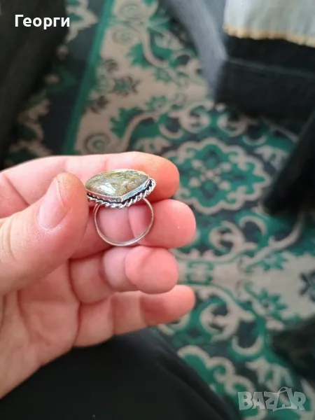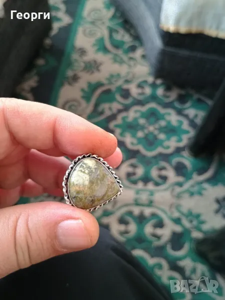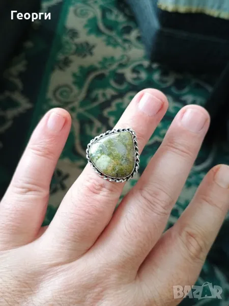 Много красив пръстен с епидот.Пръстена е чисто нов.Не е сребърен но има печат 925.