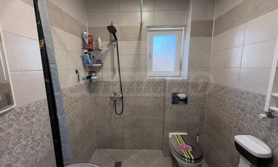 паркоместа за два автомобила.Отоплението е решено с парно на пелети и климатици.