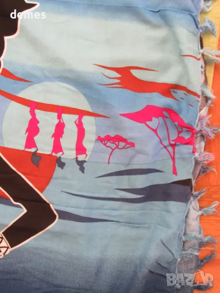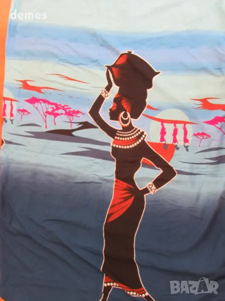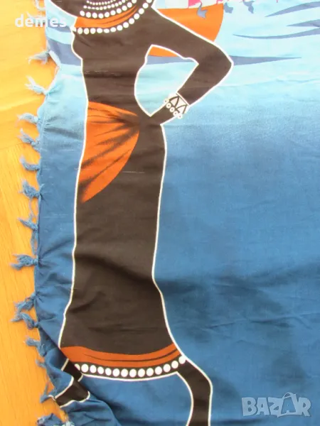 С щампа върху синия фон с класически африкански мотиви-като пано.