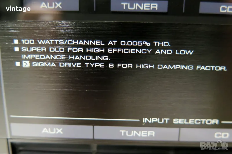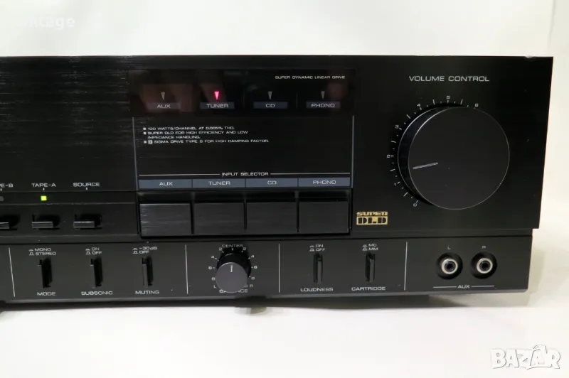 Стерео усилвател, отличен технически, много добър външен вид. Корекции: bass, treble, loudness, subsonic filter, tone defeat. Възможност за избор на ММ/МС дози. Много добър саунд! Приложените снимки и видео са реални!