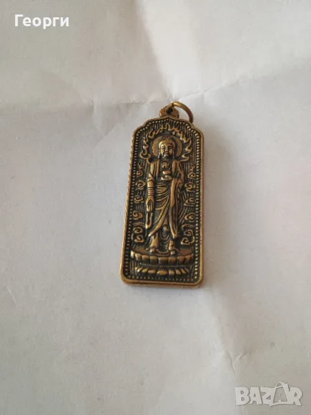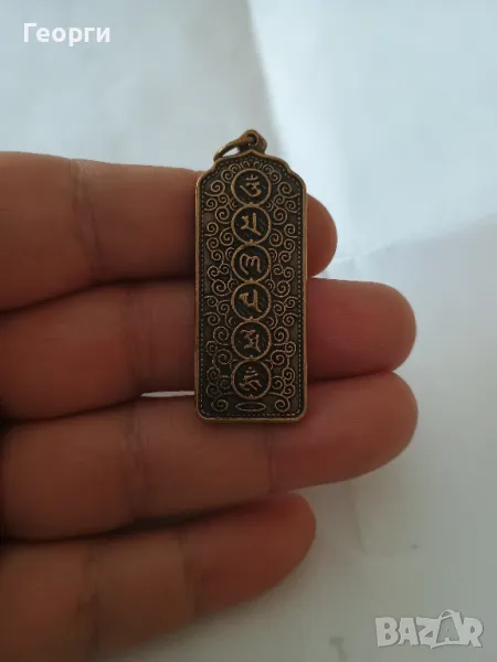 Много красива бронзова будистка плочка.Размери 48 на 18 на 4 милиметра.С халка за окачване.