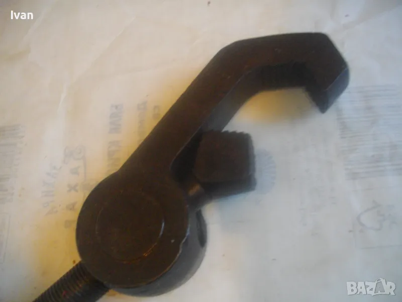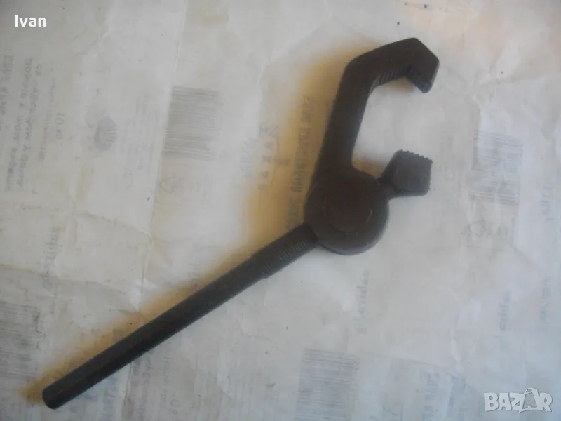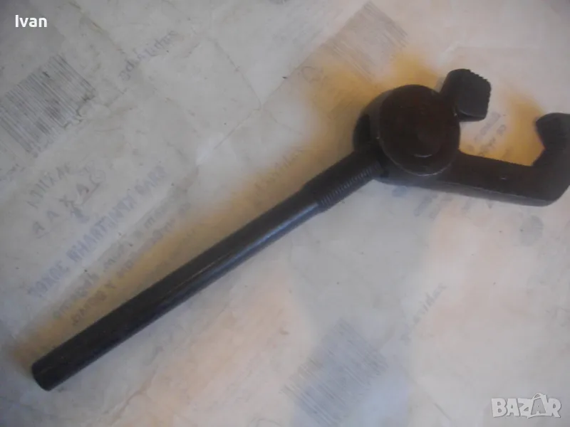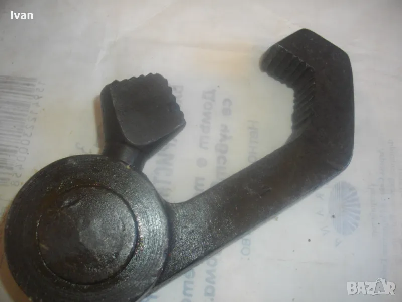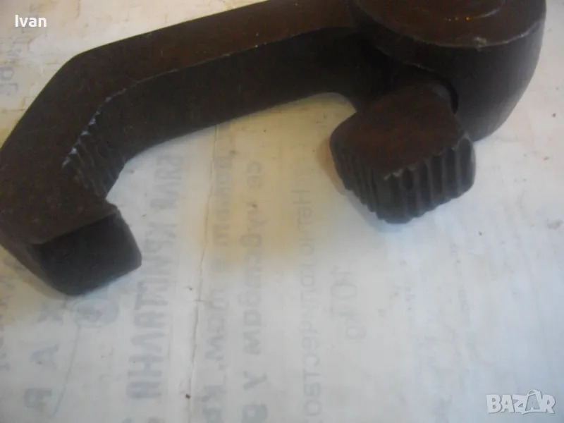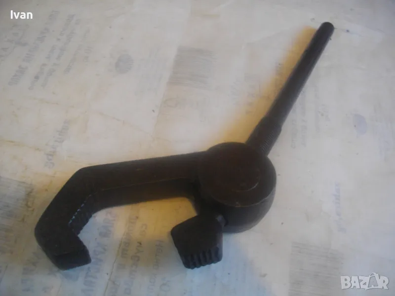 Описание на голям камионен шарнирен ключ с подвижна ябълка на захвата -немски. Голям масивен,здрав,корав,качествен раздвижен шарнирен ключ-тип водопроводен-чешмеджийски,с ябълка при въртока на раздвижване,за по широко отваряне встрани-за по удобен и лесен захват.Ключа е немско производство.Отваряне до 7 см.Ябълката е двустранна-за ляво и дясно захващане.Цялостна дължина на ключа-45 см.Възможност за удължаване с допълнителна тръба.Странична ширина на желязото на инструмента-30мм.Дръжката е от плътно масивно желязо. Зъбите на челюстите държат здраво,нямат никакво износване на ребра. Тегло на ключа - 3,2 кг.