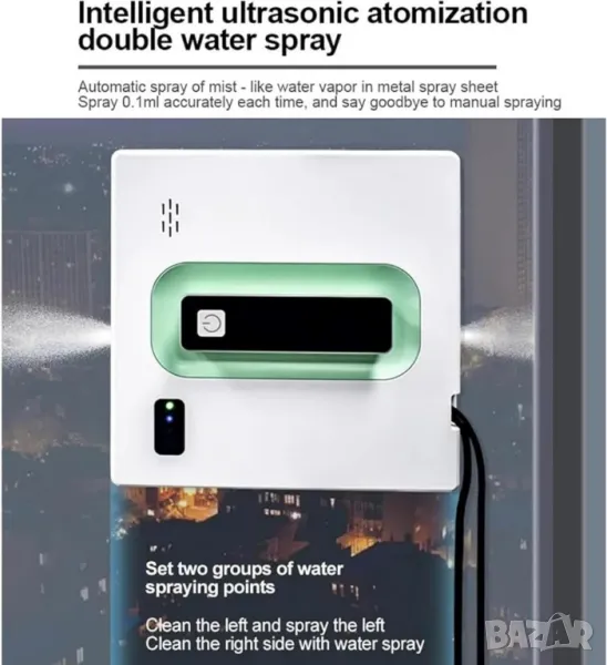 Робот за почистване на прозорци Voltz, 72W, всумак. мощност-2500Ра, Wi-Fi, 2 дюзи, контейнер 40мл