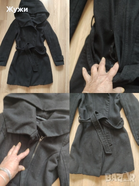 ДАМСКО черно палто, размер S,с качулка, цена 10, 90 лв, ДАМСКО яке, синьо,без забележки, размер М, цена 9,90лв . СЛЕДВА страхотно двулицево дамско яке,без забележки, размер М.цена 9,90 лв. СТРАХОТНО дамско яке,без забележки, цена 12, 90 лв.ЧЕРНО яке размер М, с качулка ,без забележки, цена 10,90 лв, като ново, закопчаването е с цип и капси.ето размери на последното яке::: рамене 40 см, под мишници 48 см, талия 44 см, дължина 75 см, ръкав 61/ 65 см.СТРАХОТНО дамско палтенце, много леко и удобно,без забележки, цена 9,90 лв