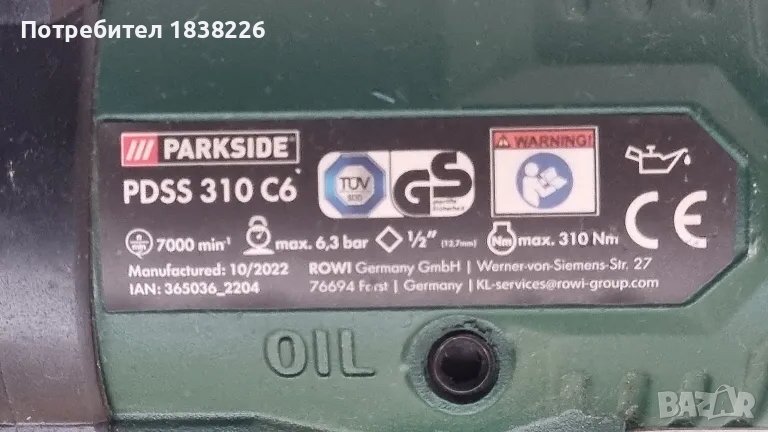 Ударен гайковерт ПАРКСАЙД