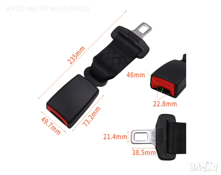 Универсален удължител за предпазен колан на автомобил 230мм.