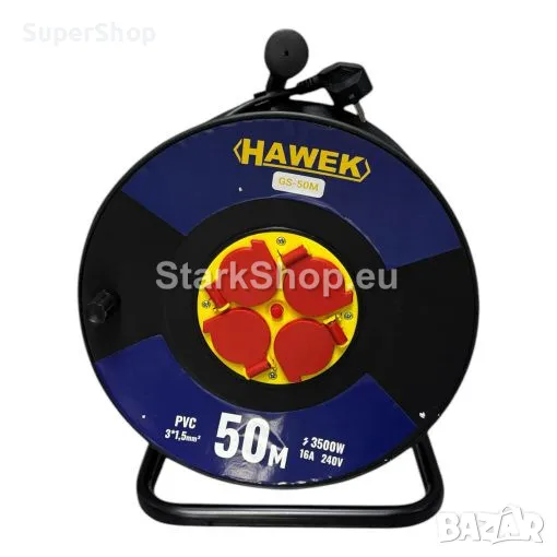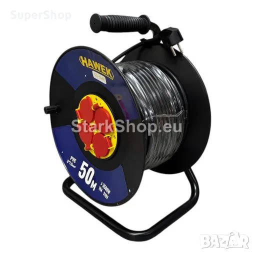 Удължител на макара с кабел HAWEK има дължина на кабела 50 м, като