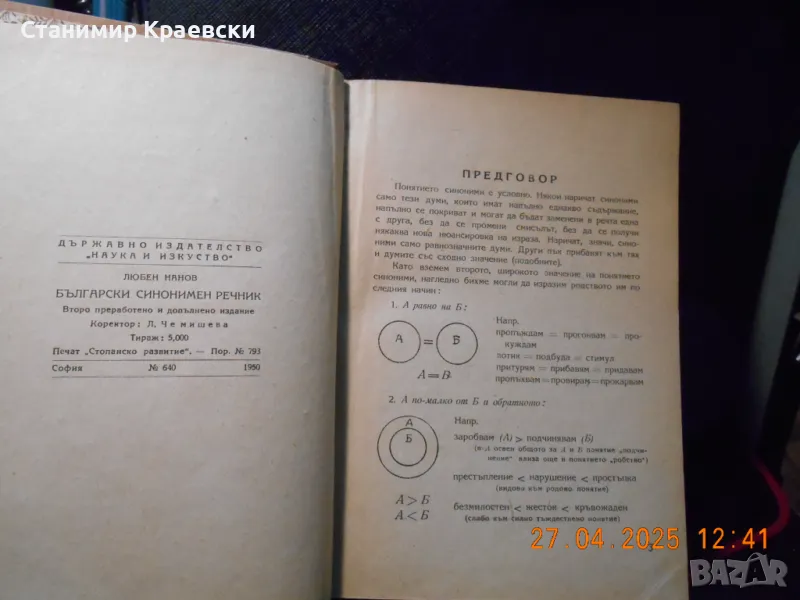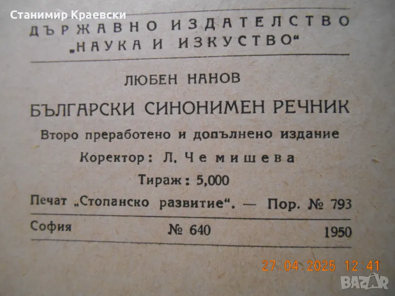 Български синонимен речник от Любен Нанов 1950 г → Обява 50102146