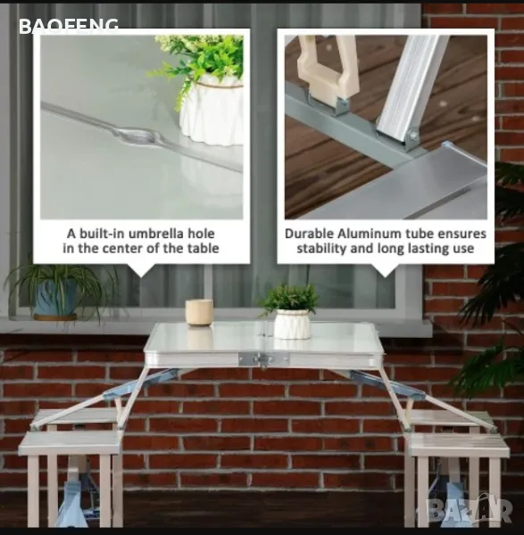 Пикник маса сгаваема куфар 4 стола алумуниева къмпинг маса, piknik masa sgavaema s 4 stola kumping masa.
