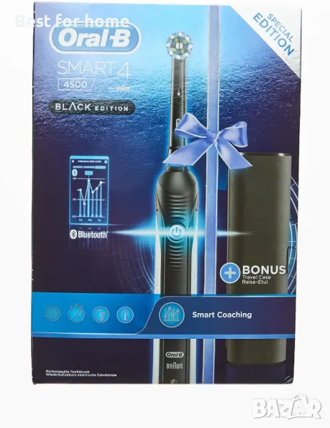 Електическата четка за зъби Oral-B Smart 4 е изключително ефективен и елегантен модел на марката. Тя безпроблемно се свързва с приложението Oral-B в телефона ви и ви води с обратна връзка в реално време. Докато подобрявате практиката си на почистване, уникалната кръгла глава на Oral-B прави всичко останало. Тя премахва до 100% повече плака от стандартната механична четка за зъби за здрави венци и започва да прави вашата усмивка по-бяла от първия ден на четкане чрез премахване на повърхностните петна. Не само това, но и четката за зъби ви помага да защитите вашите деликатни венци с технологията за контрол на налягането, която намалява скоростта на измиване и ви предупреждава, да бъдете по-нежни, ако държите твърде силно.